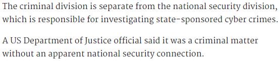 “The U.S. case remains under seal, so we have no information to provide at this time,” said Peter Carr, a spokesman for the DOJ’s criminal division, in a statement to Reuters.